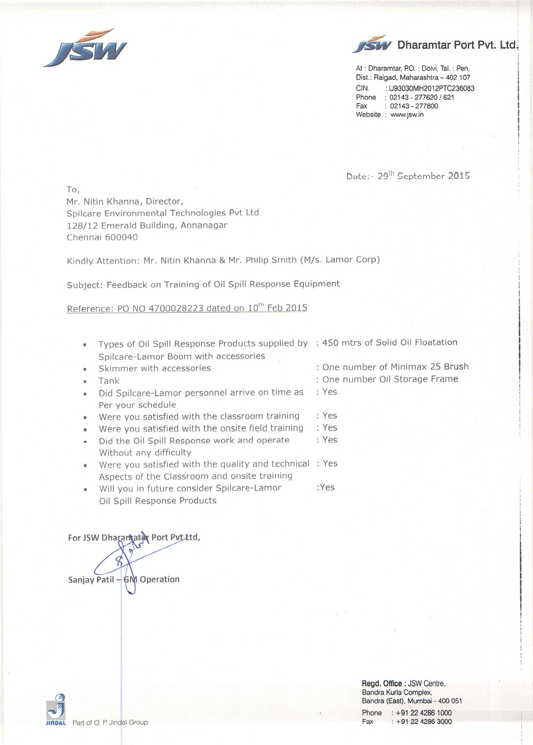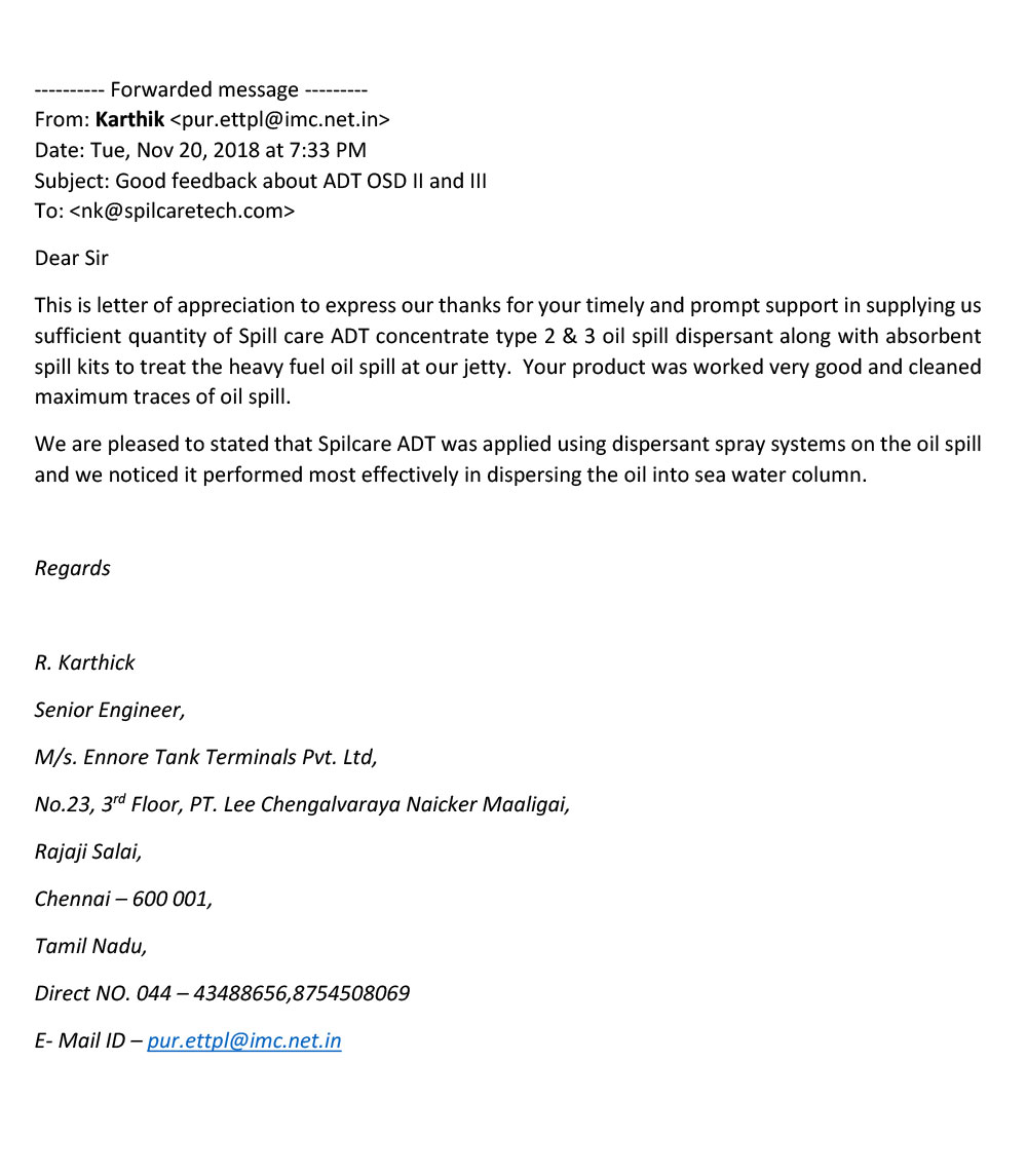 Spilcare Oil Spill dispersant was supplied to GRSE and was part of the Defence Ministers Award of Excellence for CGS Barracuda.